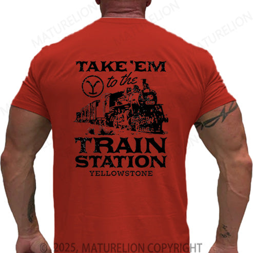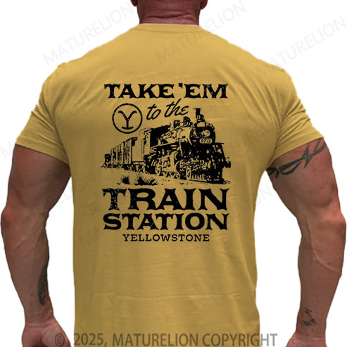 Maturelion Men's T-shirt Take'em To The Train Station Yellowstone Cotton T-shirt