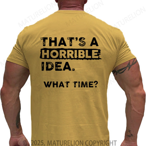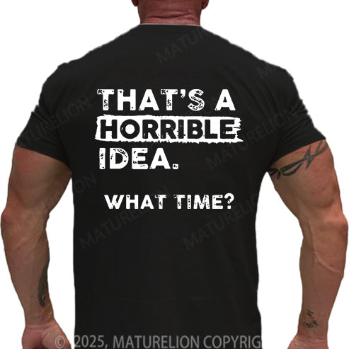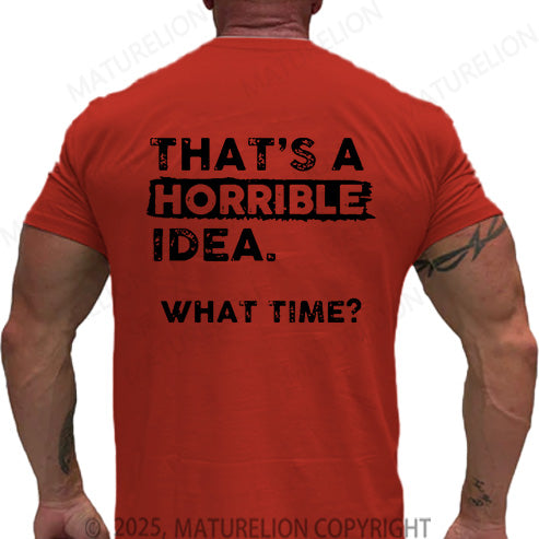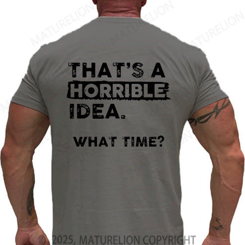 Maturelion Men's T-shirt That Is A Horrible Idea What Time Cotton T-shirt