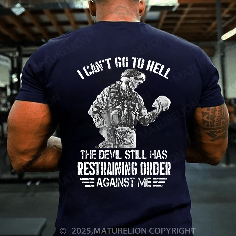 Maturelion Men's T-shirt Veteran I Cant Go To Hell The Devil Still Cotton T-shirt