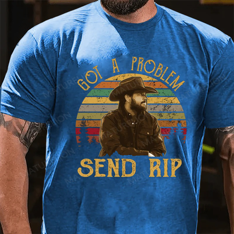 Maturelion Men's T-Shirt Yellowstone Got A Problem Send Rip Cotton T-Shirt