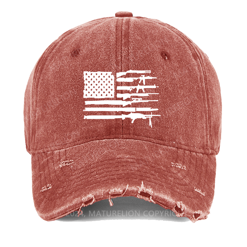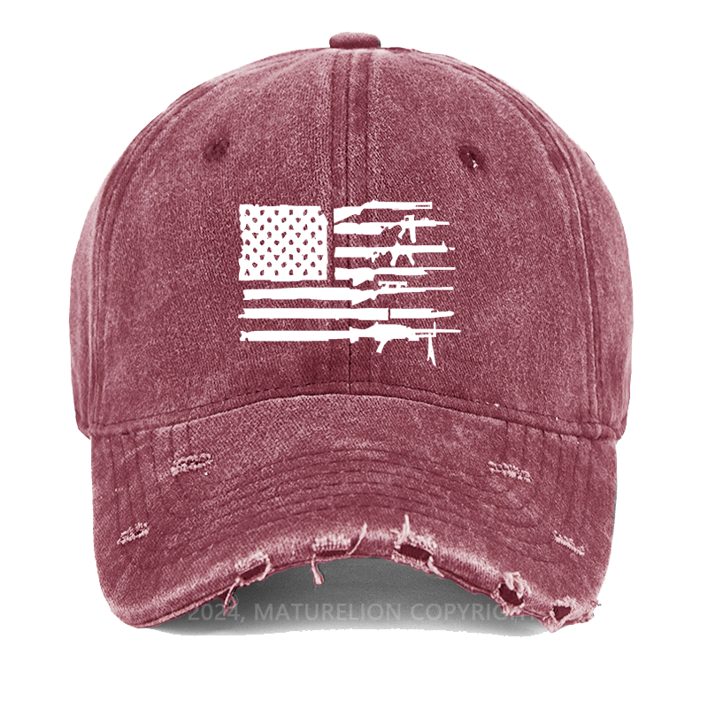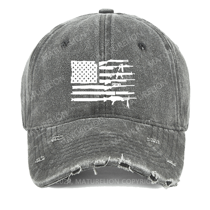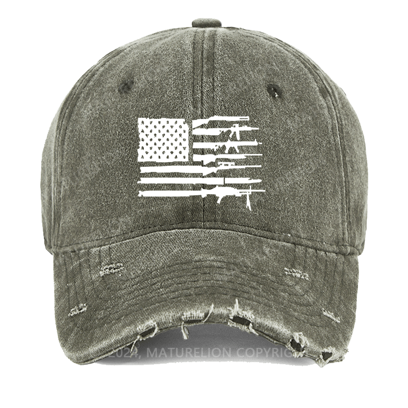 Maturelion Men's Washed Cap American Gun Flag Washed Cap