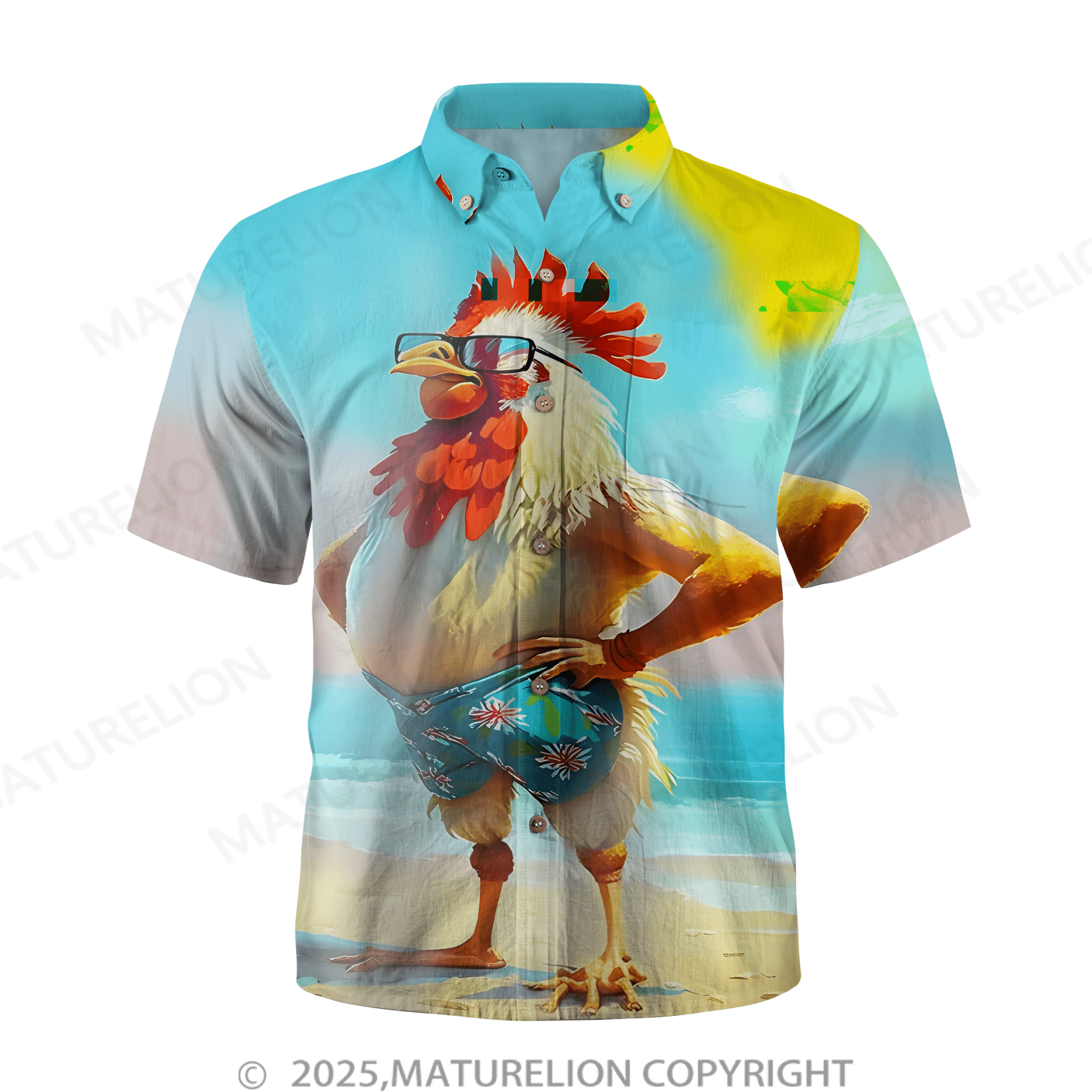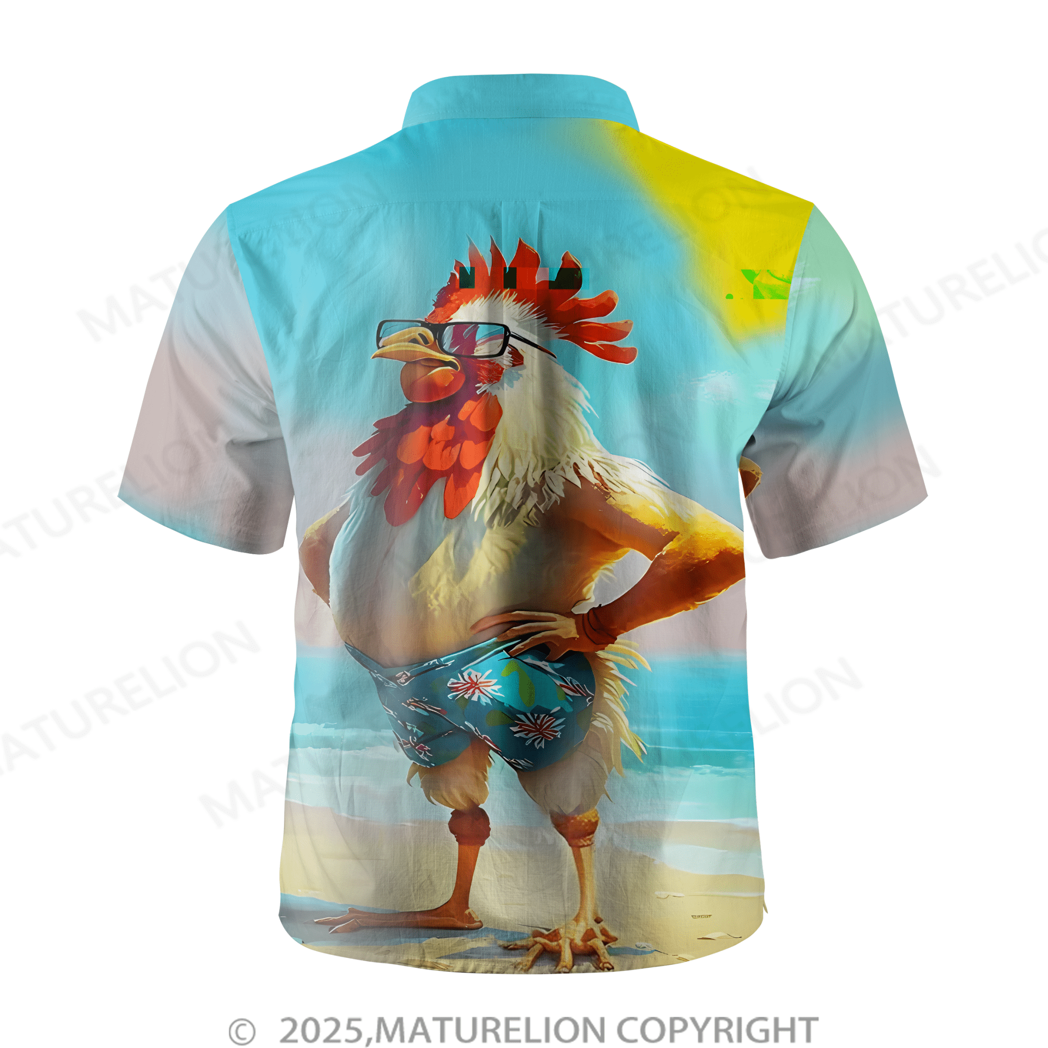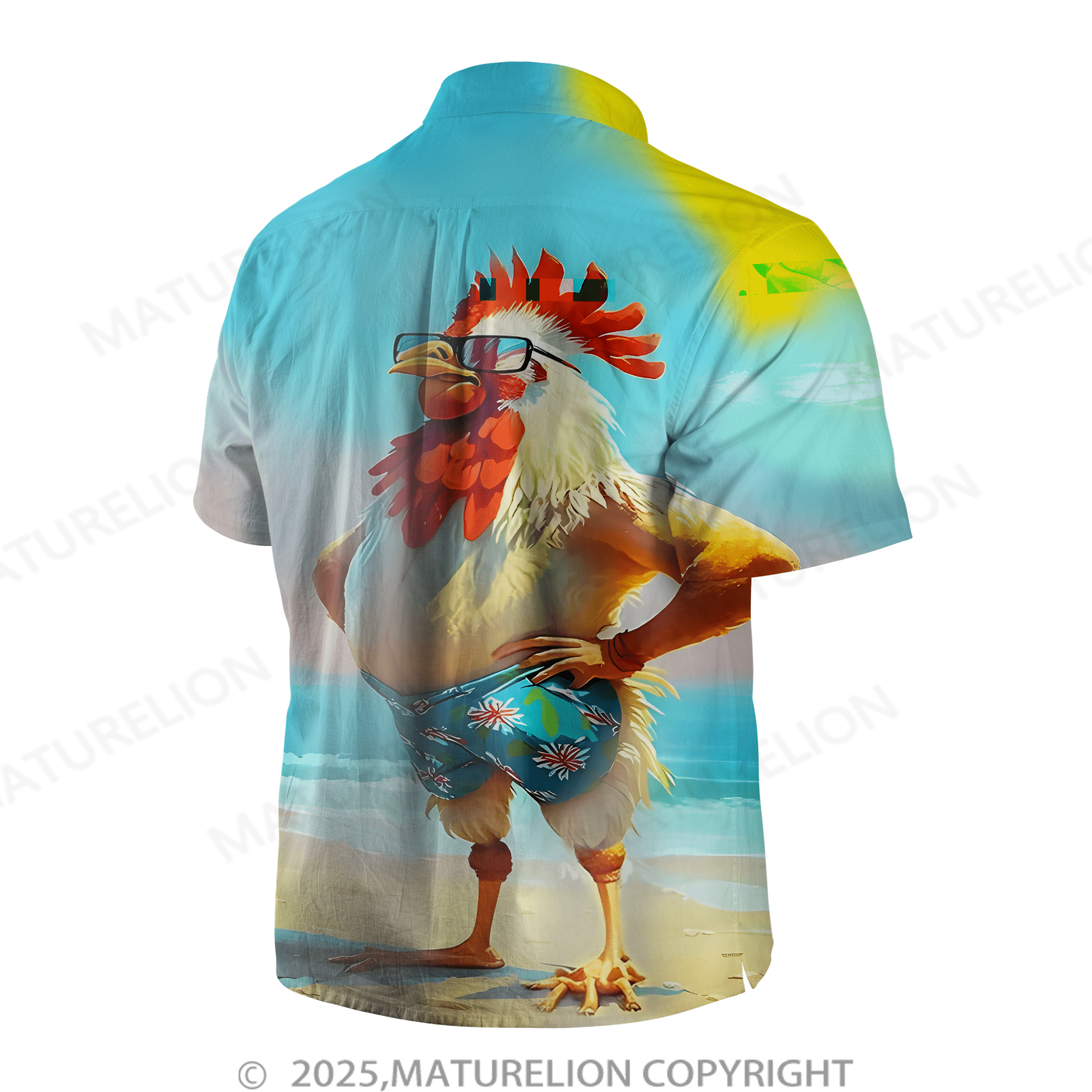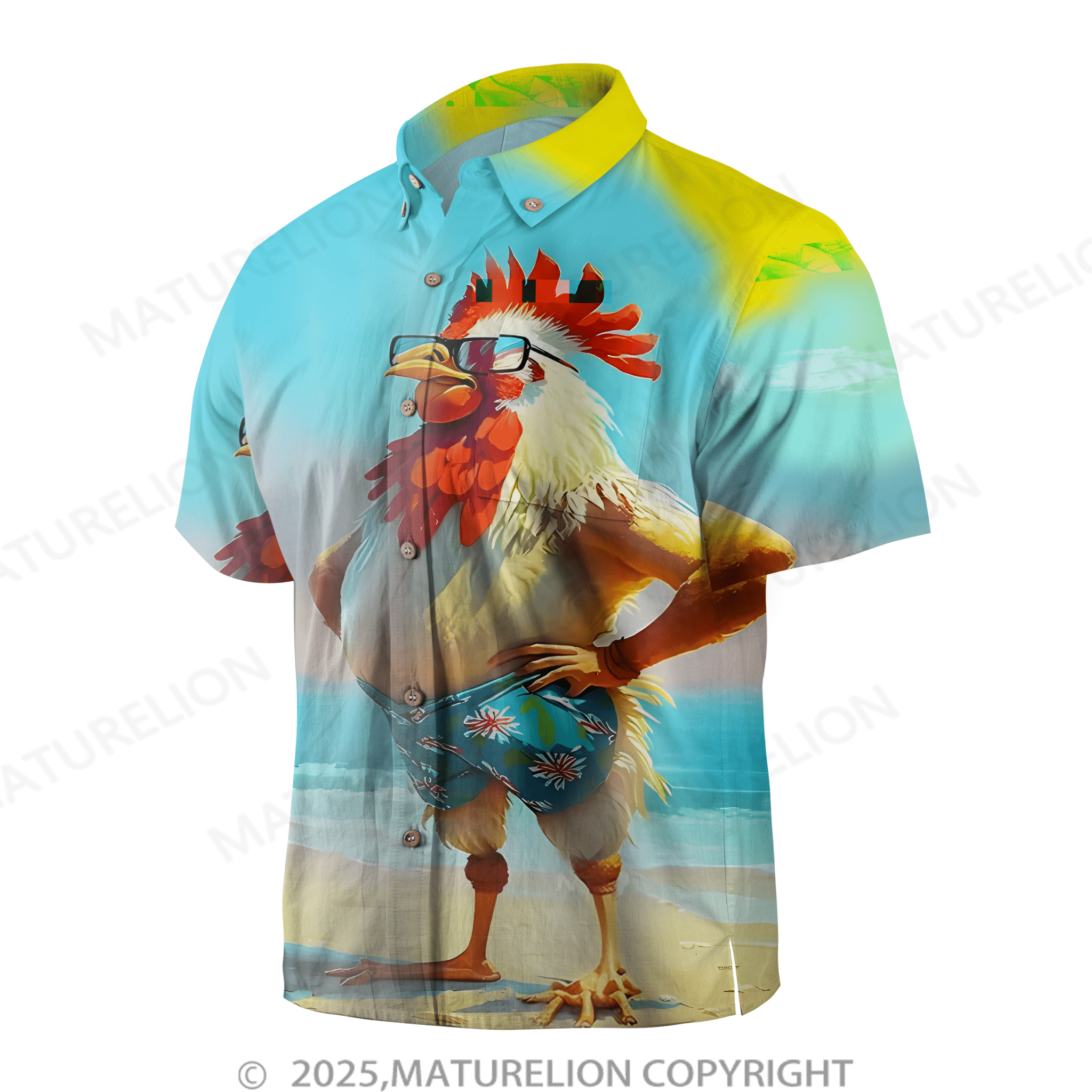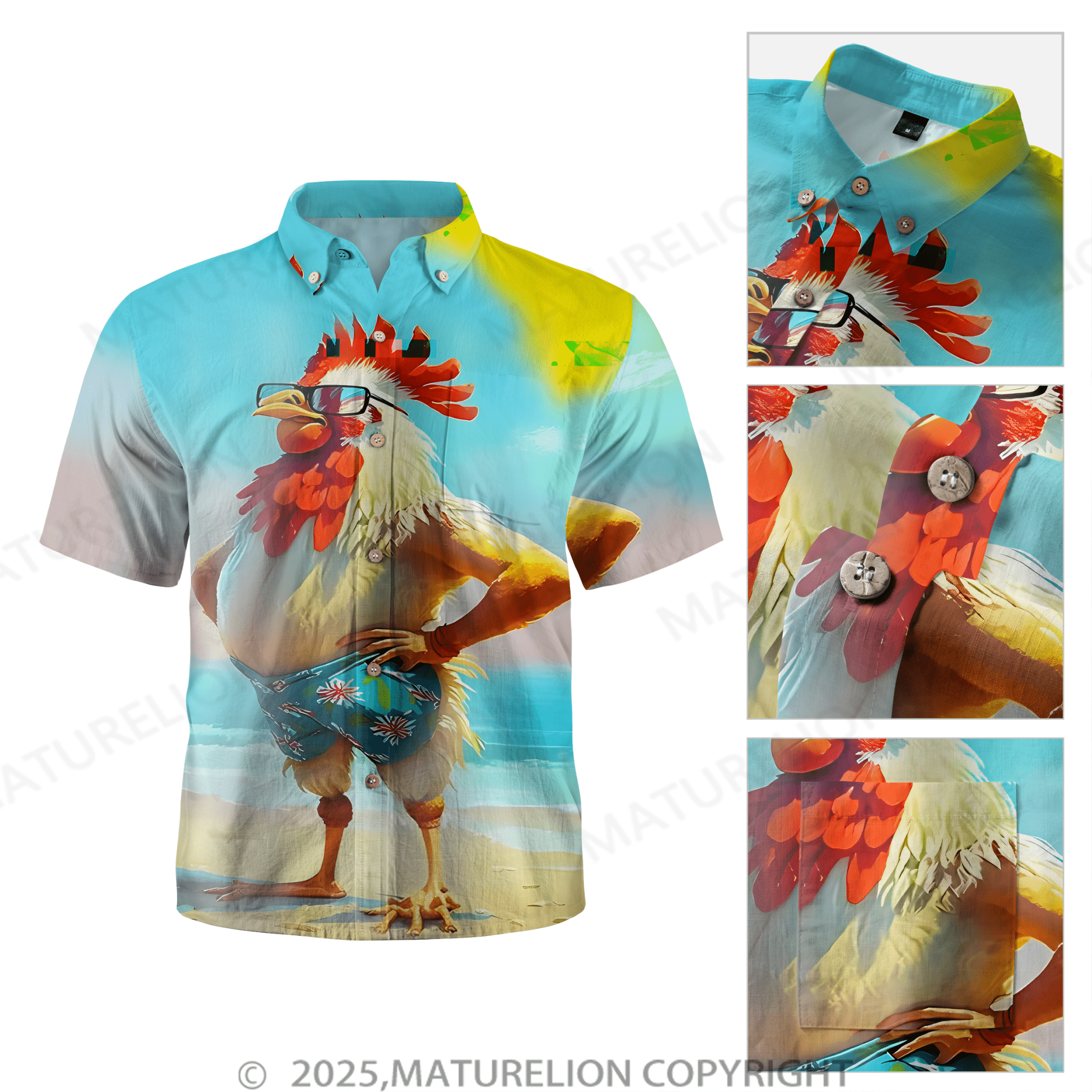 Maturelion Moisture-wicking Ombre Beach Chicken Chest Pocket Hawaiian Shirt