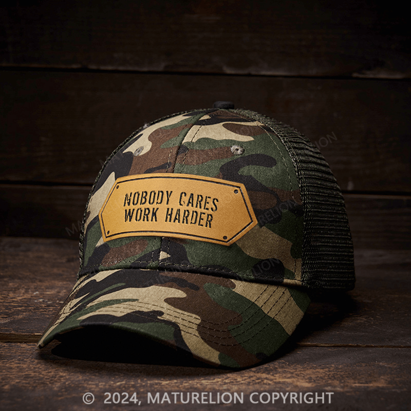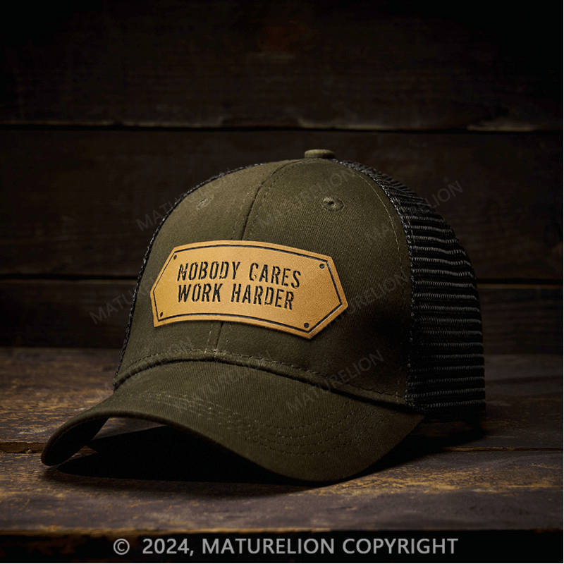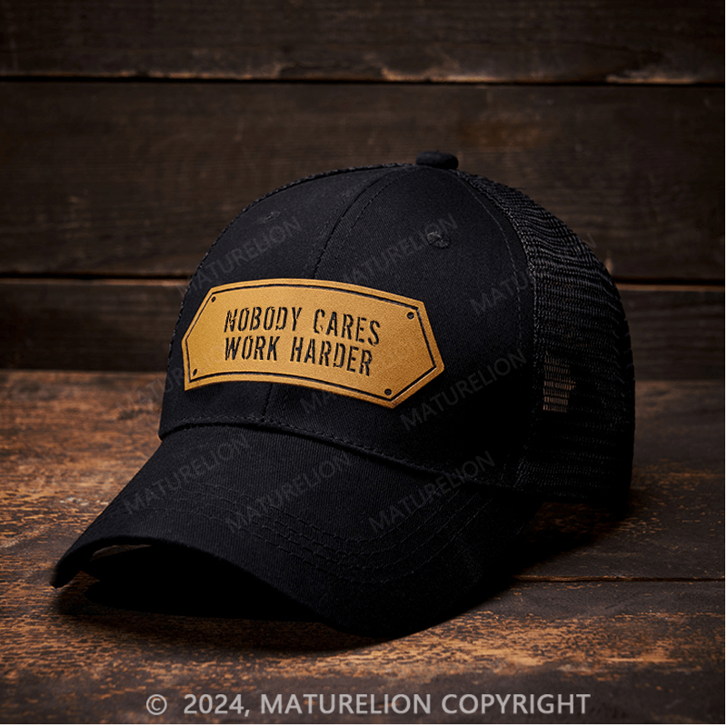 Maturelion Nobody Cares Work Harder Leather Patch Cap