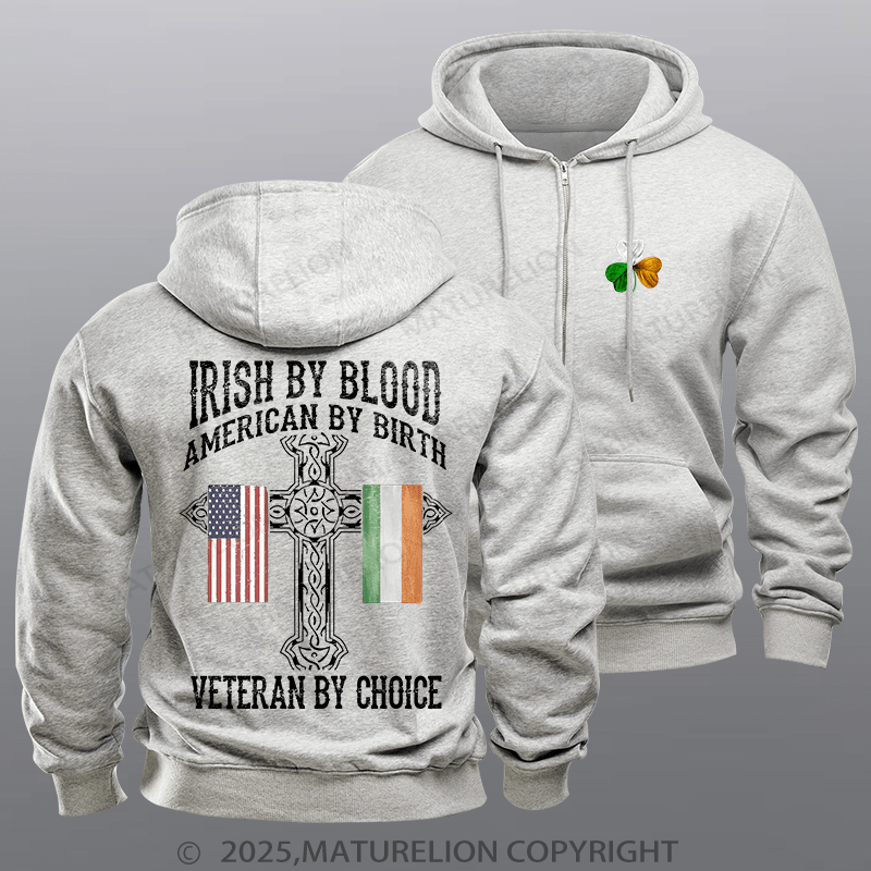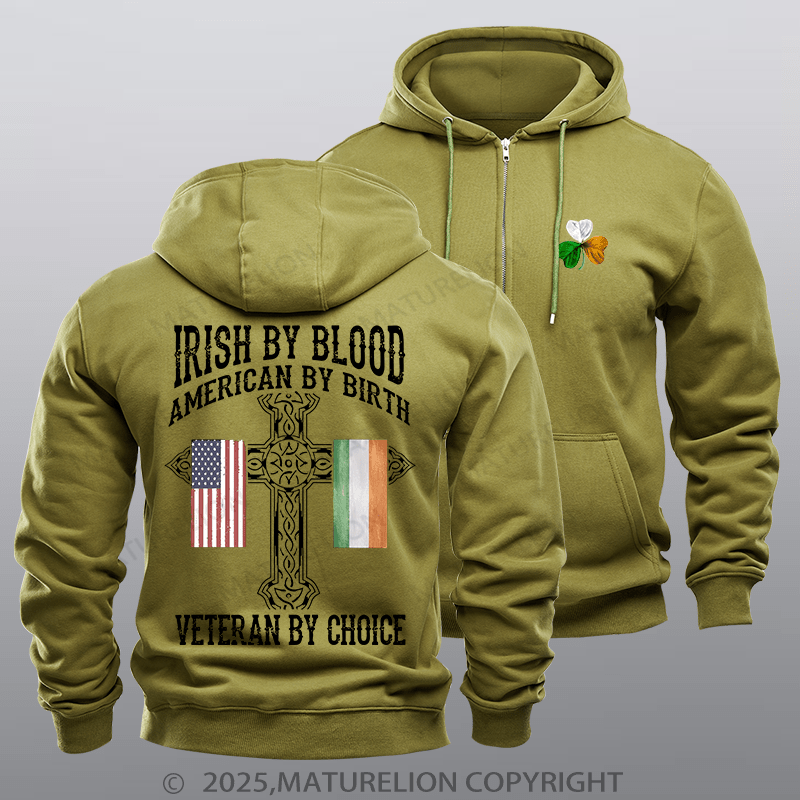 Maturelion St Patrick's Hoodie Irish By Blood Veteran By Choice Veteran Fleece Zipper Hoodie