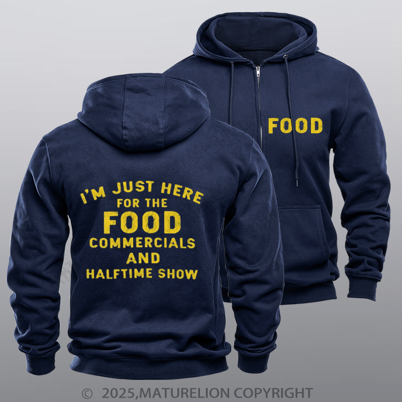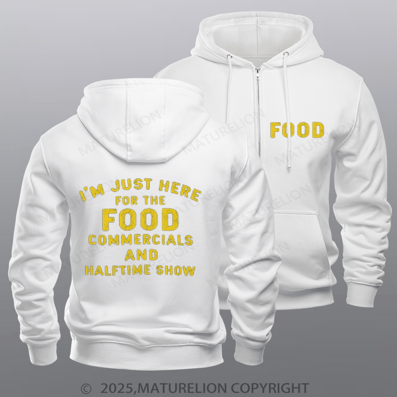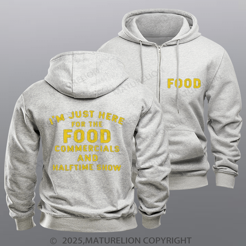Maturelion Super Bowl Hoodie I'm Just Here For The Food Commercials Fleece Zipper Hoodie