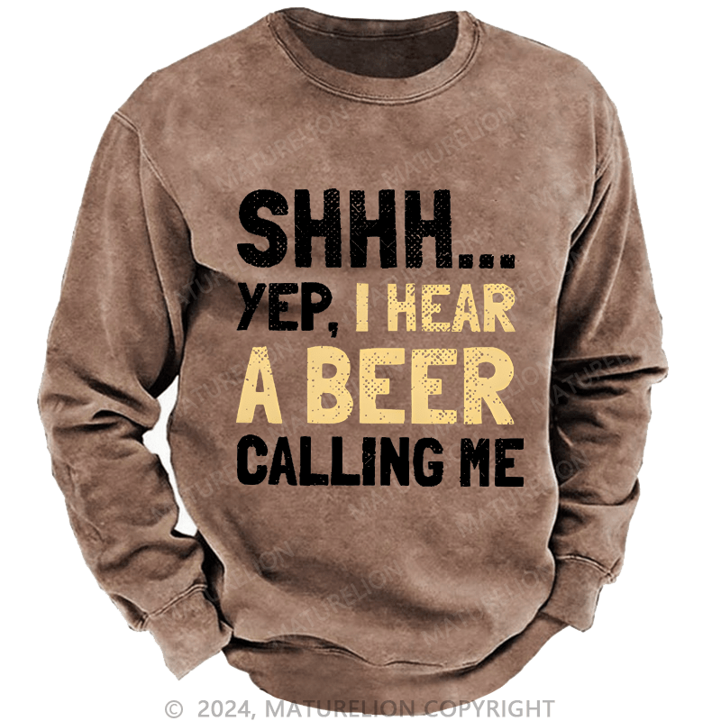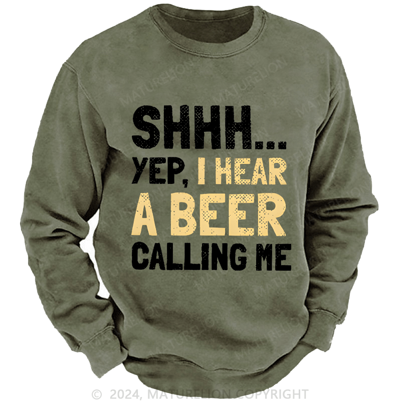 Maturelion Sweatshirt Shhh...Yep,I Hear A Beer Calling Me Custom Washed Sweatshirt