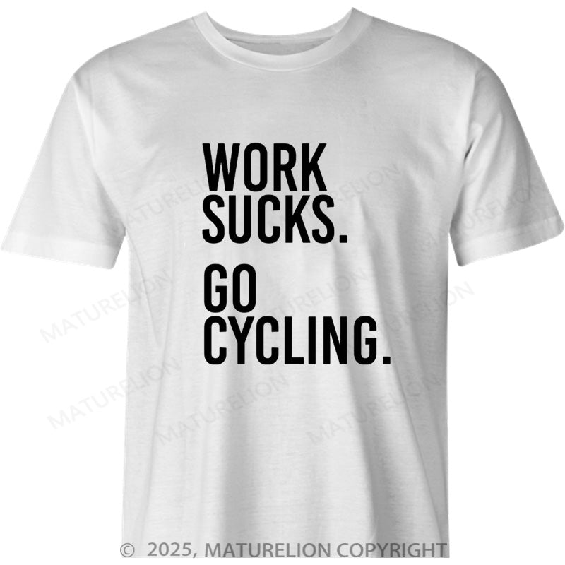 Maturelion British T-shirt Work Sucks Go Cycling Cotton T-shirt