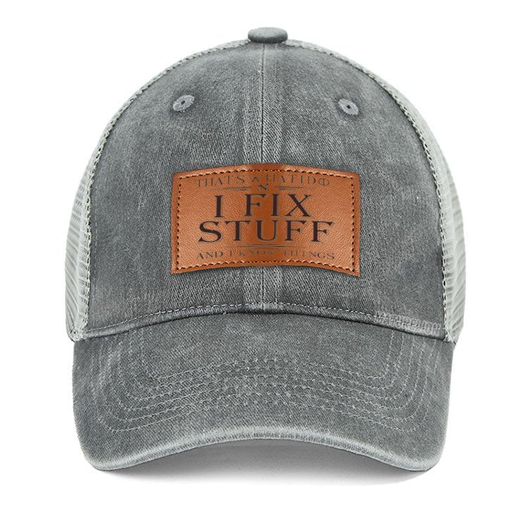 Maturelion That's What I Do I Fix Stuff And I Know Things Leather Patch Cap