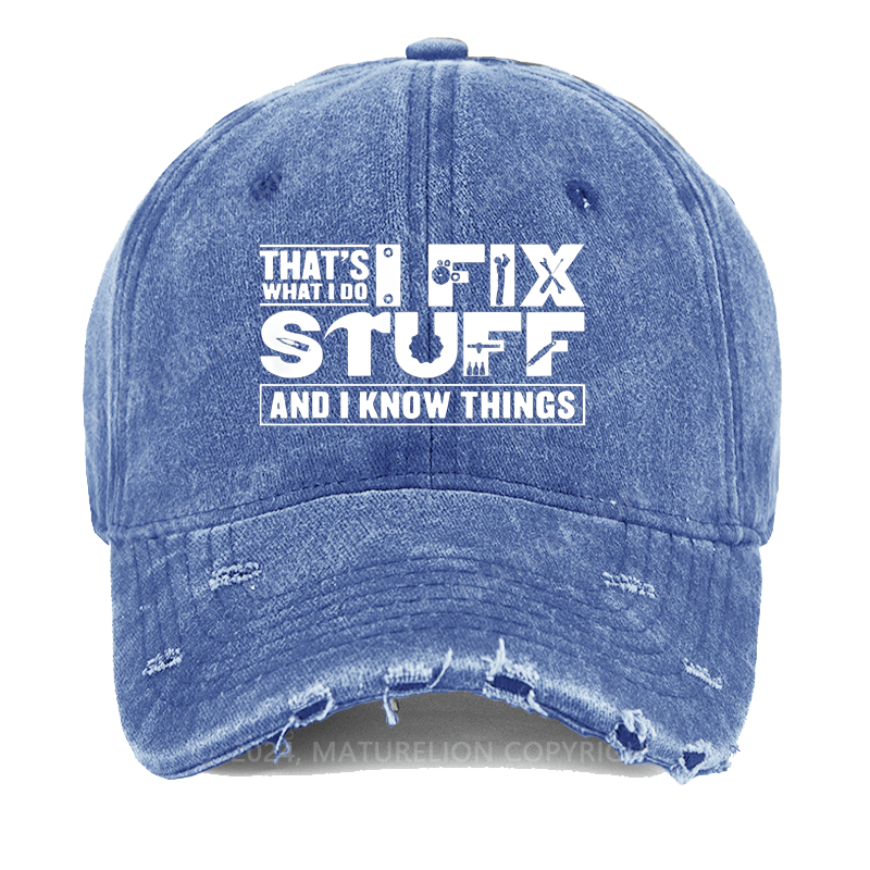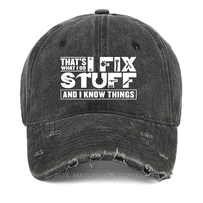 Maturelion That's What I Do I Fix Stuff And I Know Things Washed Vintage Cap