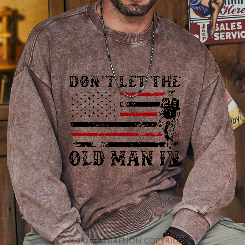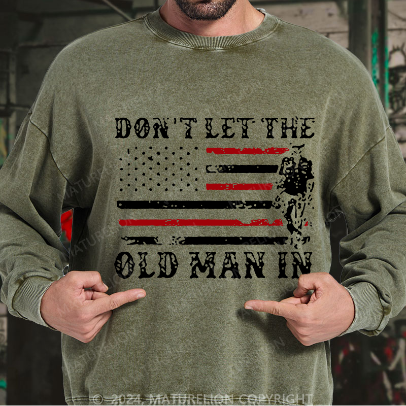 Maturelion Don't Let The Old Man in Vintage American Flag Washed Sweatshirt