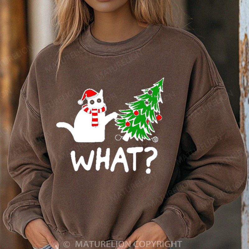 Maturelion Women's Sweatshirt Black Cat What Washed Sweatshirt