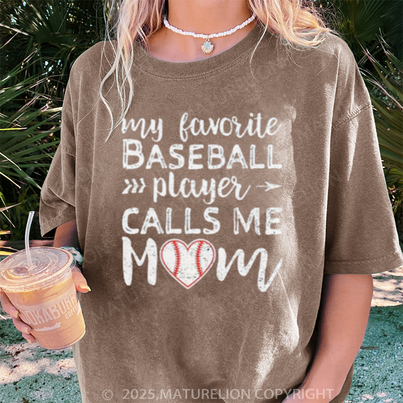 Maturelion Women's T-shirt My Favorite Baseball Player Calls Me Mom DTG Washed T-shirt