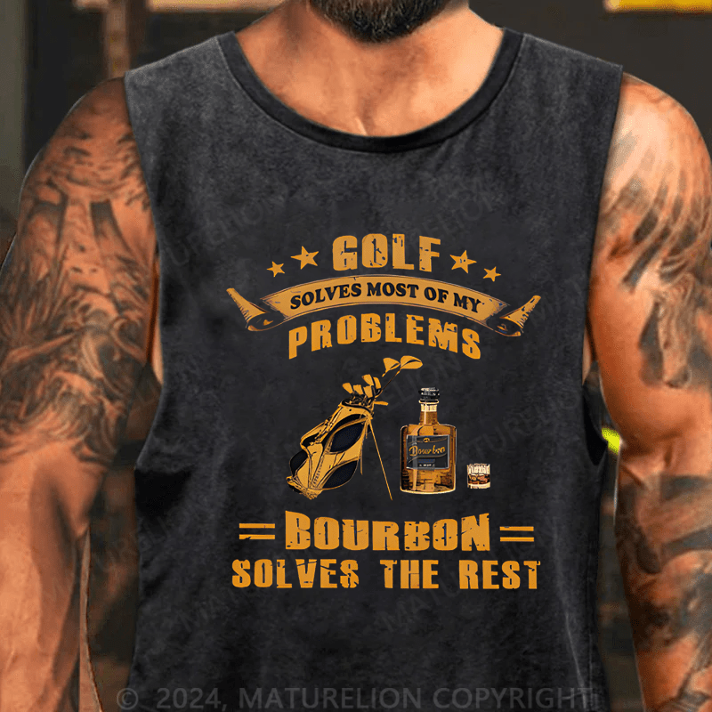 Mturelion Men's Tank TOP Golf Solves Most Of My Problems Bourbon Solves The Rest Tank TOP