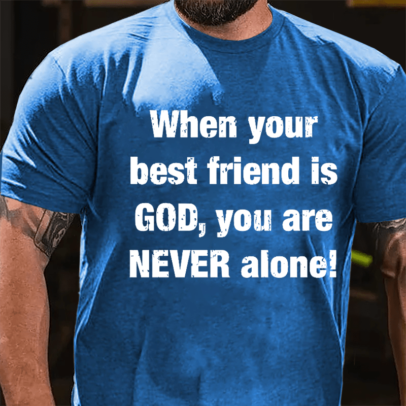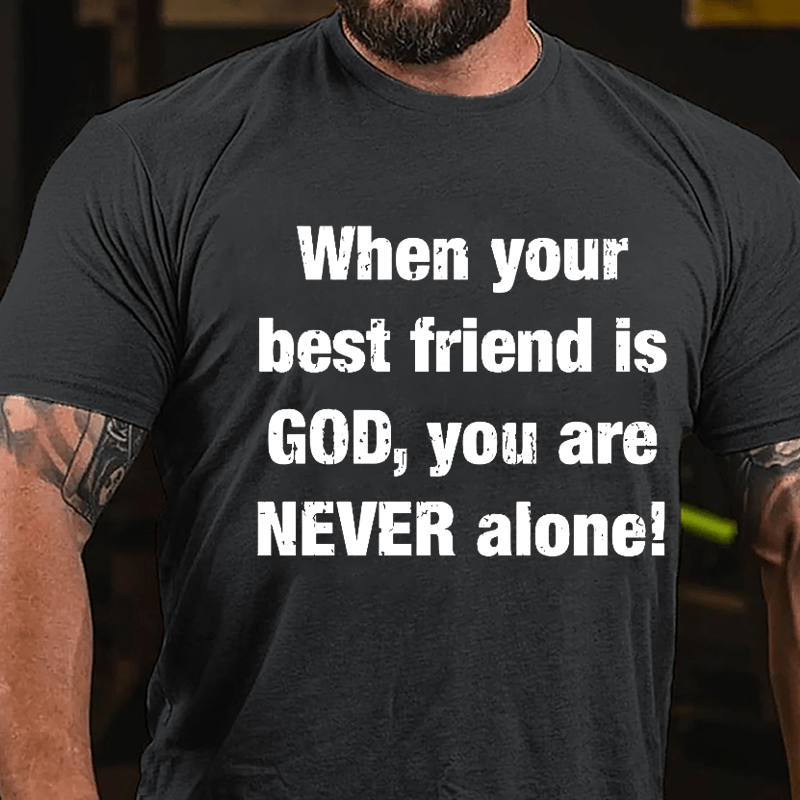 Embrace the comforting presence of divine friendship with this heartwarming t-shirt featuring the message "When Your Best Friend Is God You Are Never Alone." Crafted from high-quality materials, this tee serves as a symbol of the unwavering support found in a deep relationship with God.