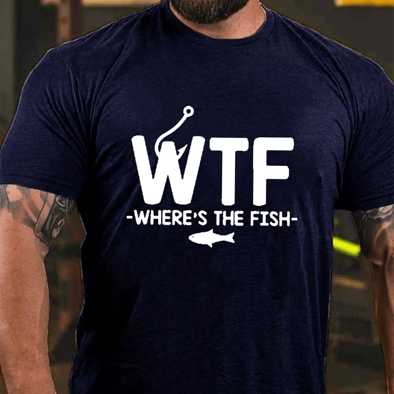 WTF - Where's The Fish Funny Print Cotton T-shirt (Free Customization)